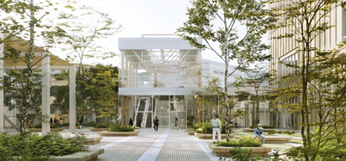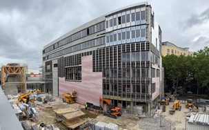En vertu de nos responsabilités environnementales et sociétales, la construction suit la démarche Bâtiment Durable Francilien qui se traduit notamment par une part d’insertion professionnelle dans les marchés de travaux et par un impact énergétique et carbone réduit. Ainsi le bâtiment H bénéficiera de toitures végétalisées et de panneaux photovoltaïques. Sa façade sera couverte d’un bardage en terre cuite, un matériau d’origine naturelle et aux bonnes performances thermiques. Les abords extérieurs du bâtiment redessineront, en lieu et place des anciens amphis du bâtiment A, un nouvel espace de convivialité et de convergence : une place avec des espaces en pleine terre et arborés, nommée la « piazza ». Une attention particulière sera portée au choix des végétaux et des essences d’arbres qui devront être rustiques et non allergisantes.